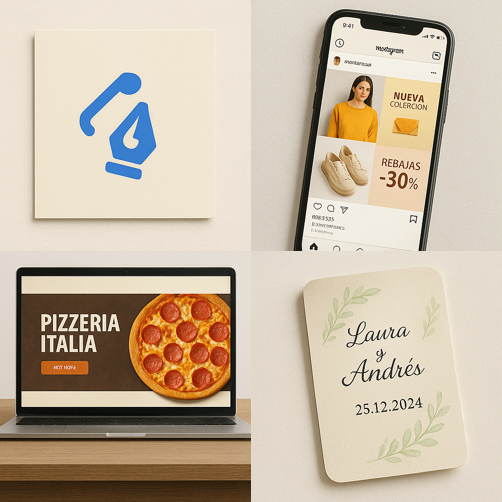 Piezas rápidas para redes, WhatsApp y proyectos puntuales.